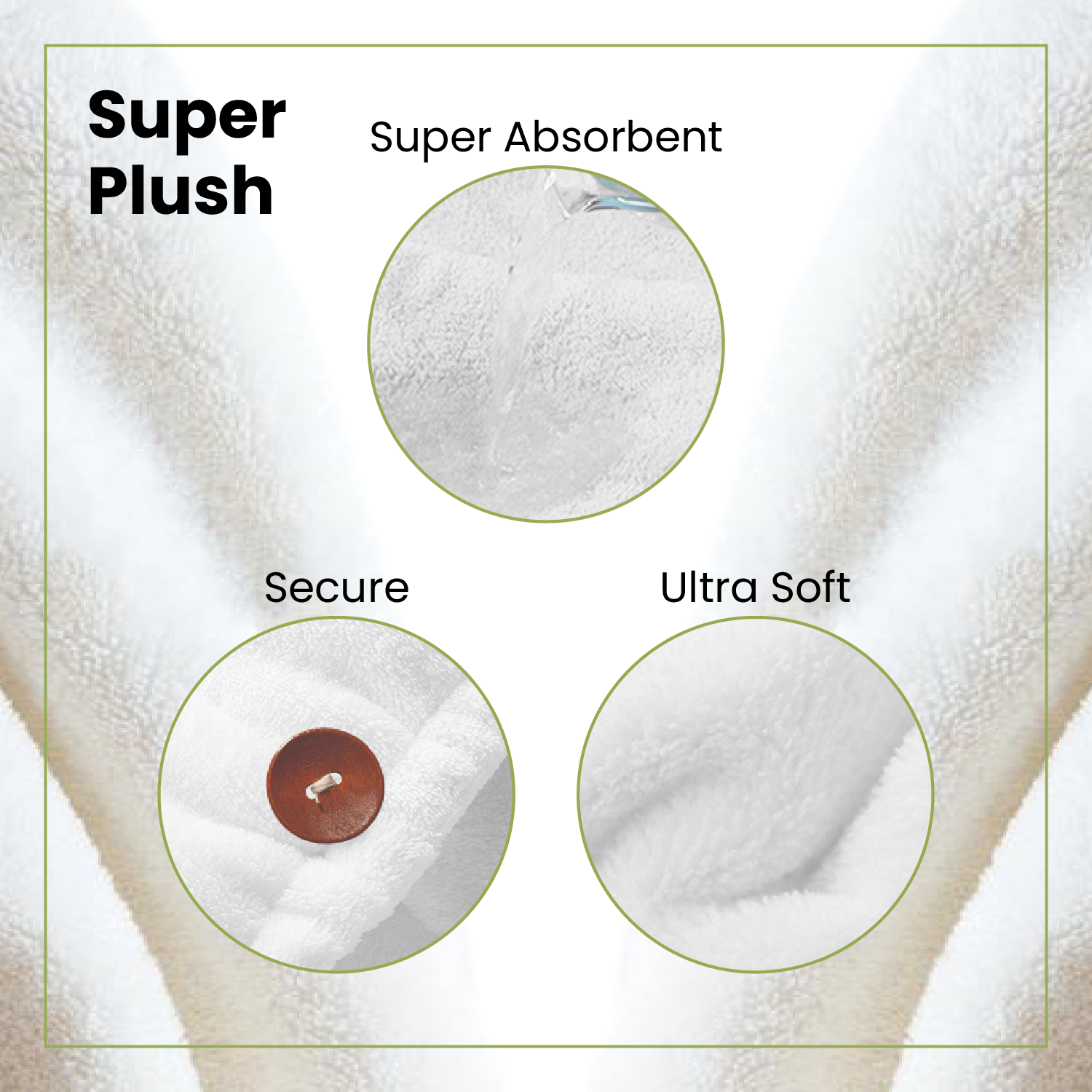 • The Ecopro Eco-Friendly Hair Wrap is super soft and durable, made of organic bamboo cotton that absorbs water quickly to reduce hair breakage. Made of ultra plush material with a button closure that allows for a secure hold while drying hair quickly.