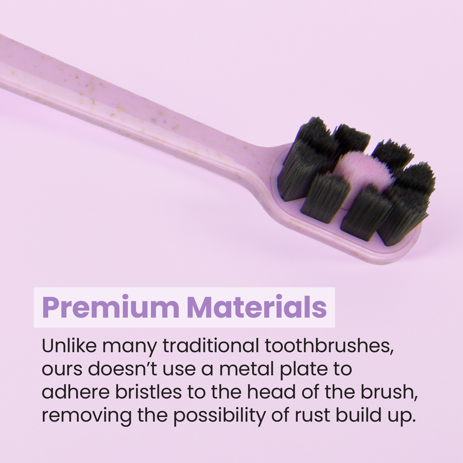 • Toothbrush construction is free of any metal parts to eliminate the possibility of rust.
