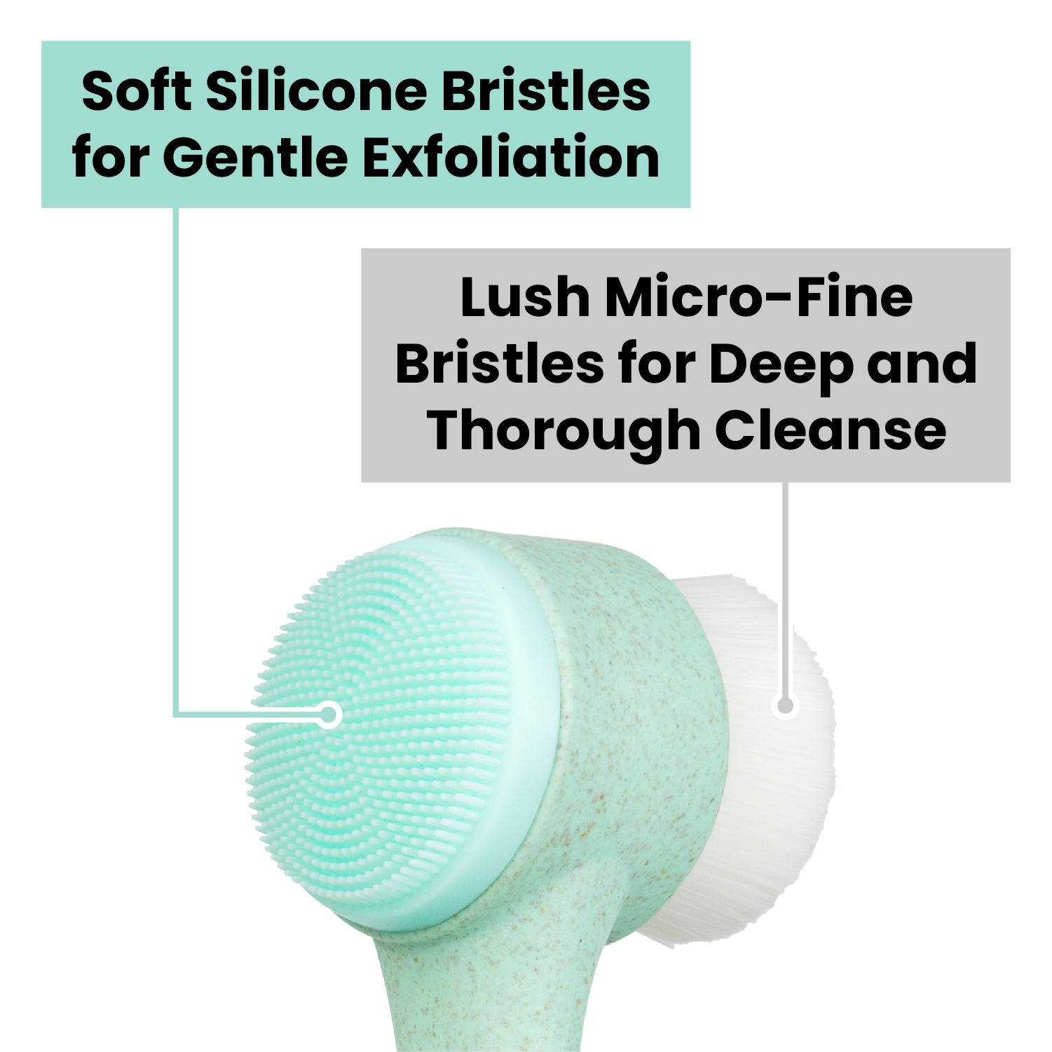 • The Lindo Eco Clean Face Brush is the perfect 2-in-1 cleanser to help fight pore blockage and uneven skin tone. One side features lush microfine bristles for a deep and thorough cleanse, while the other side features soft silicone bristles for gentle exfoliation. This product also features a handle made from natural renewable plant fibers that reduce carbon emissions during production.