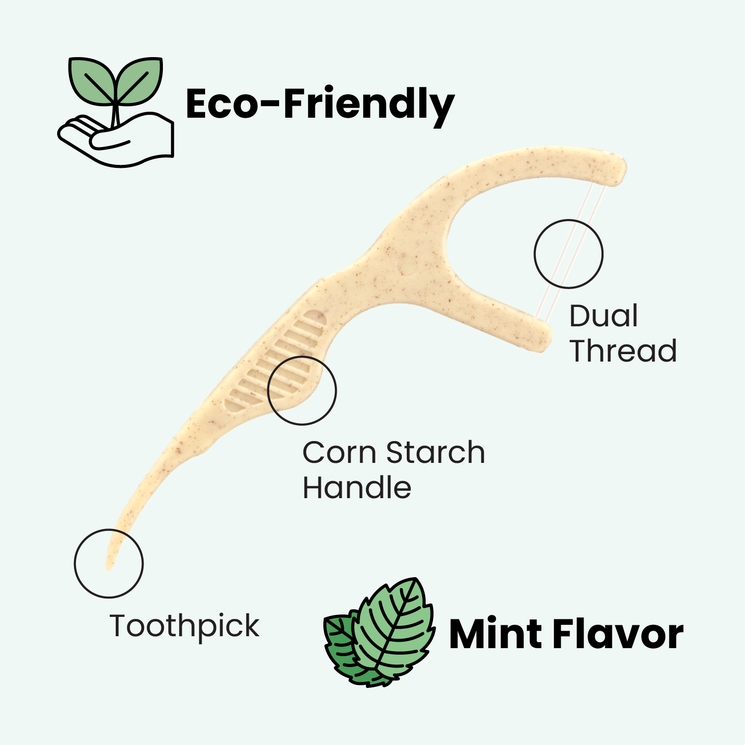 • Dentists recommend flossing once a day to help prevent bad breath and gum disease. Whether it’s at home or on the go, our Lindo Eco Floss Picks are an effective and eco-friendly solution to traditional floss picks that help to remove any food or residue between teeth.