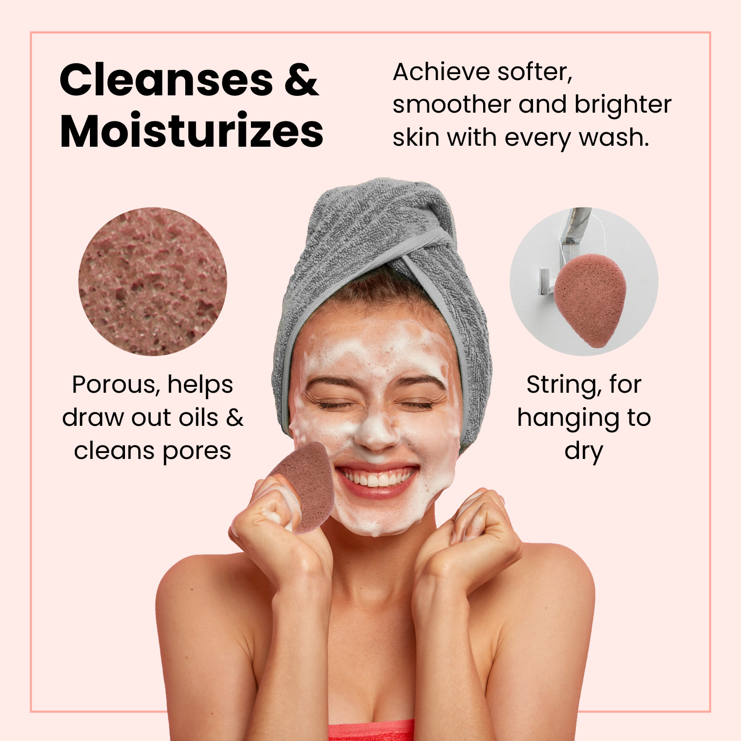 - As an eco-friendly and biodegradable product, the Konjac sponge naturally balances the pH level of your skin as well as exfoliates and moisturizes it.
