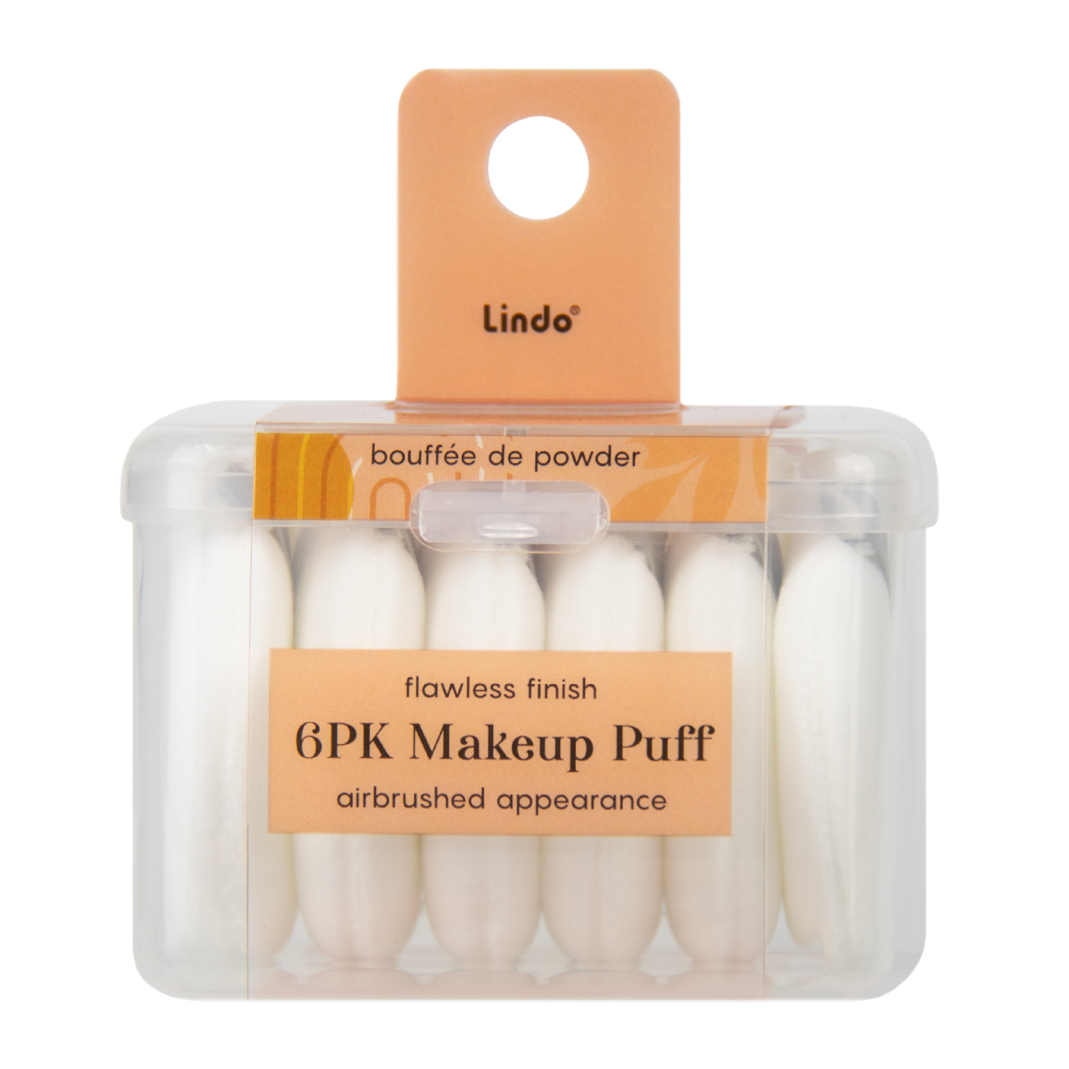 - The Lindo Makeup Puffs are ultra soft and gentle on the skin, providing a flawless airbrush finished when used with creams, liquids or powder cosmetics. This set includes 6 different puffs that help evenly distribute makeup for a beautiful airbrushed appearance and a reusable storage case.