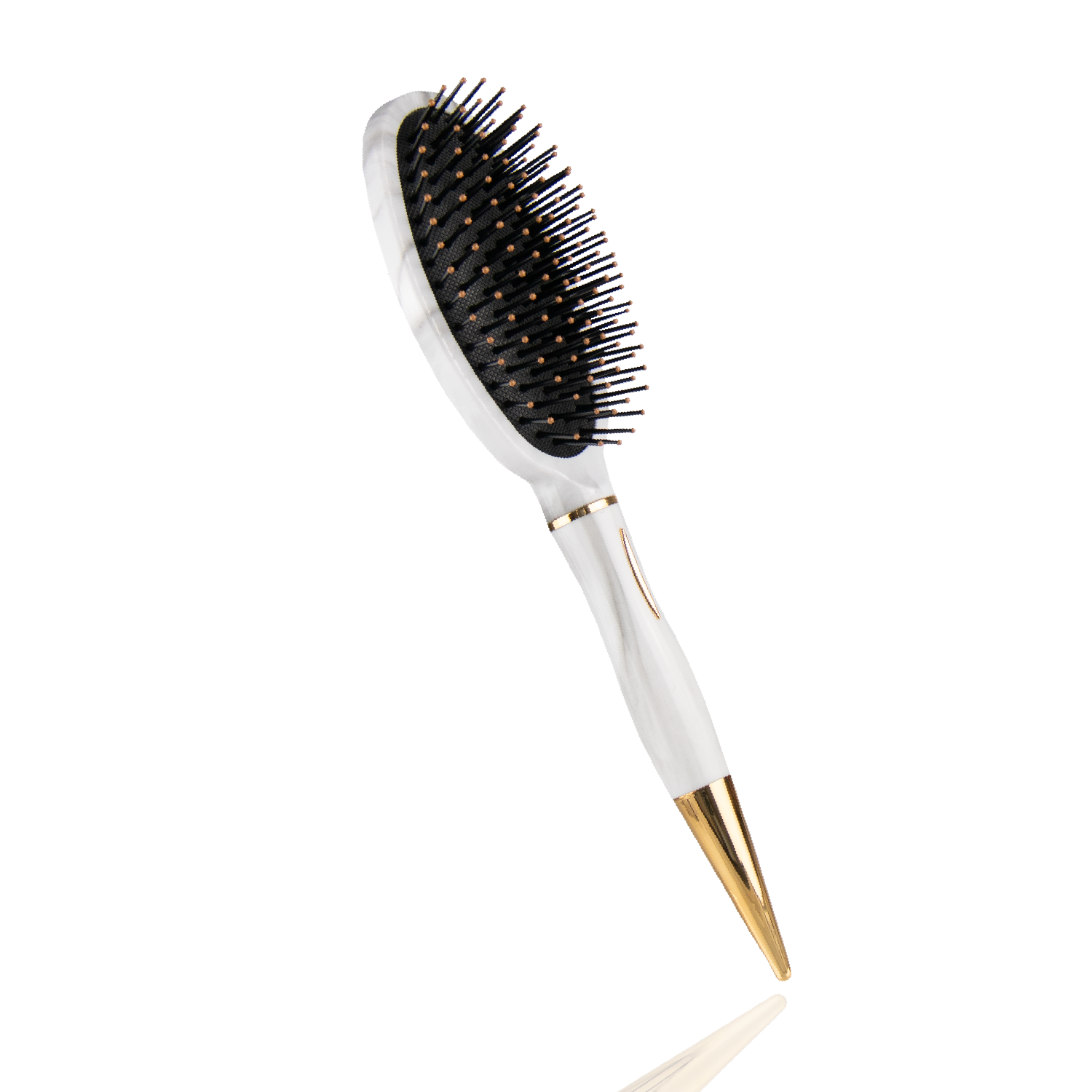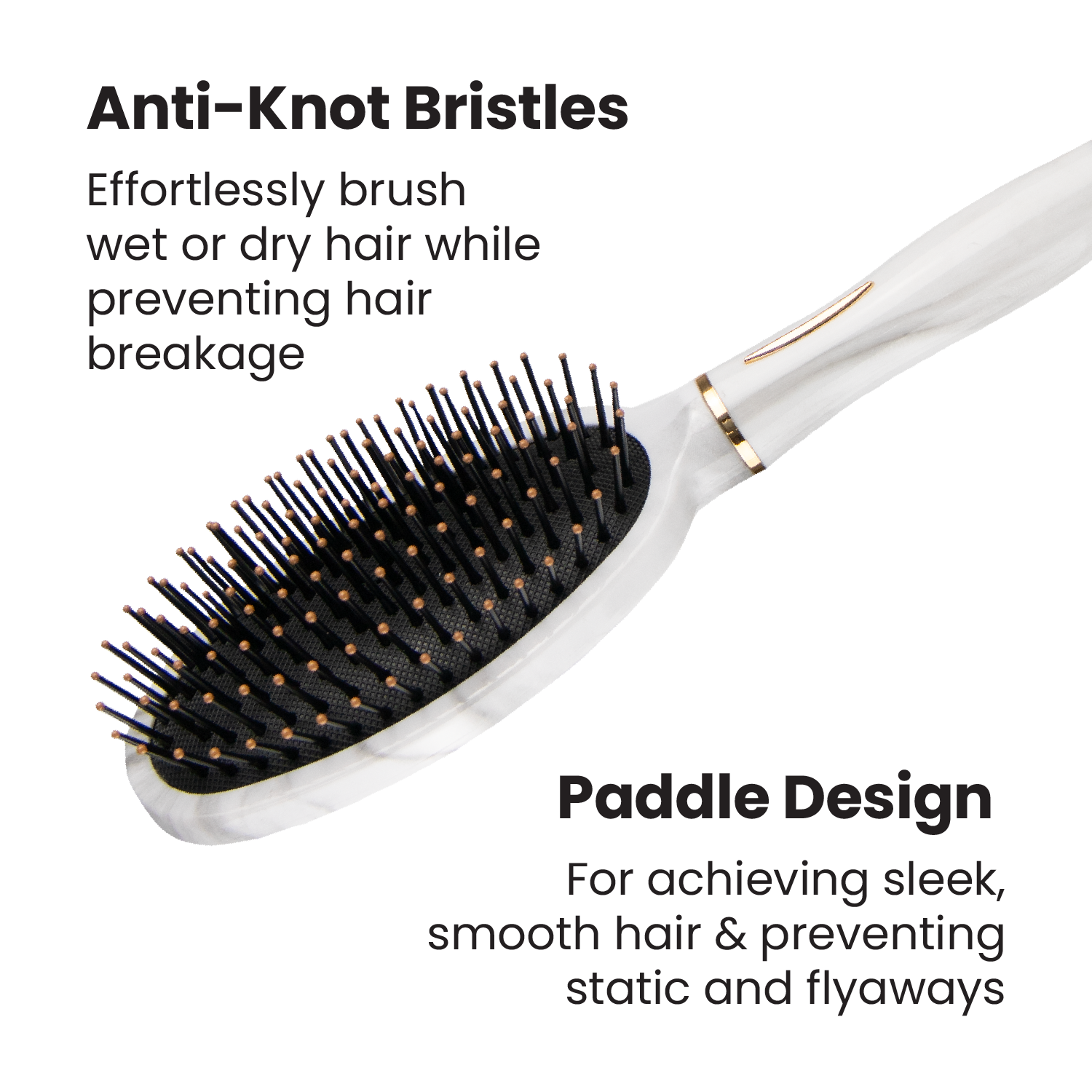 - The Lindo Marble Oval Hair Brush is for achieving sleek, smooth hair and preventing static and flyaways. Designed with flexible anti-knot bristles for effortless hair brushing of wet or dry hair while preventing hair breakage. Easily detangle hair, removing knots without pulling, and distribute natural hair oils or products from roots to ends.