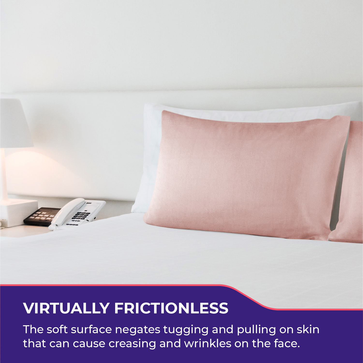 • A frictionless surface negates tugging and pulling on skin that can cause creasing and create wrinkles on the face.