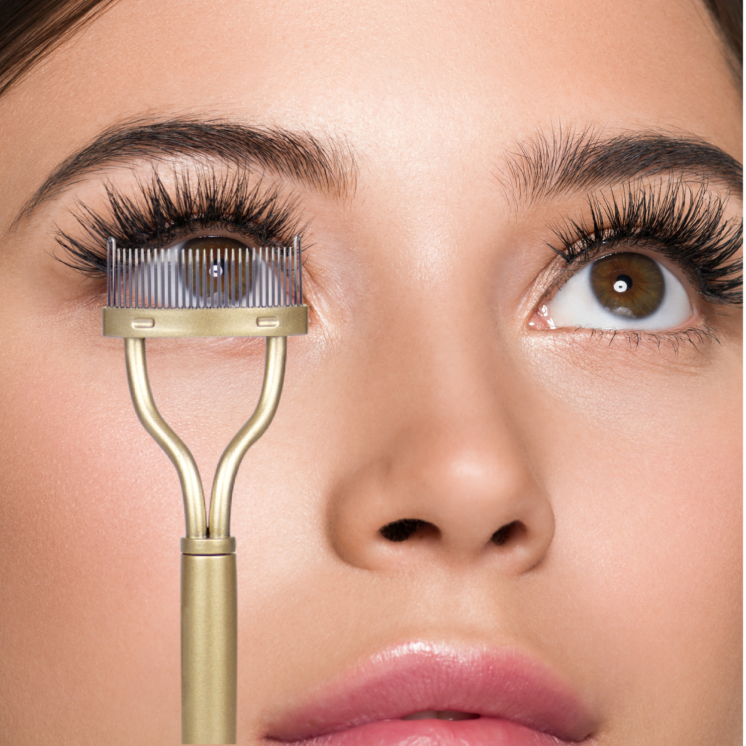 - Position lash comb at the base of the lashes and gently guide lashes through the teeth of the comb.